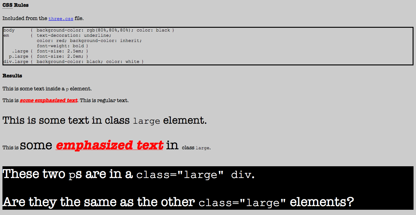 Simple Example (colour, size, & selectors)