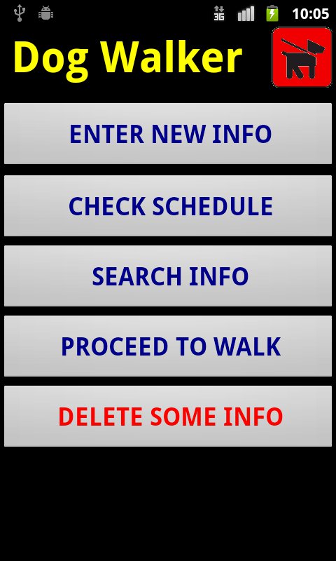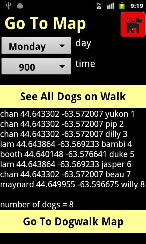 When you are sure the list is accurate, tap the lower button Go To Dogwalk