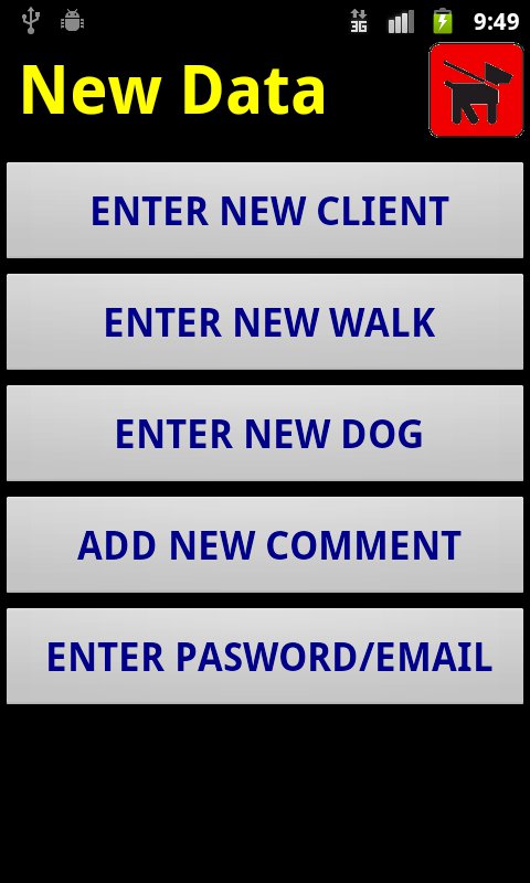 dogwalks. On the landing page tap Enter New Info, then on the New Data