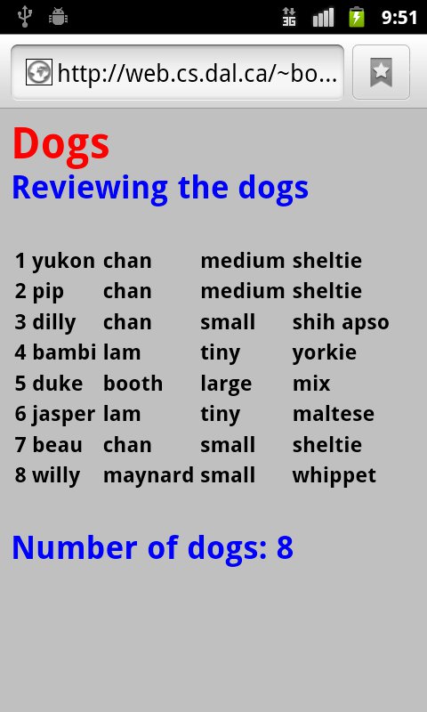 This opens a web page with a summary of all the dogs, which includes